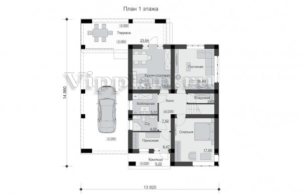 | Размеры дома: | 14.86м×13.92м |